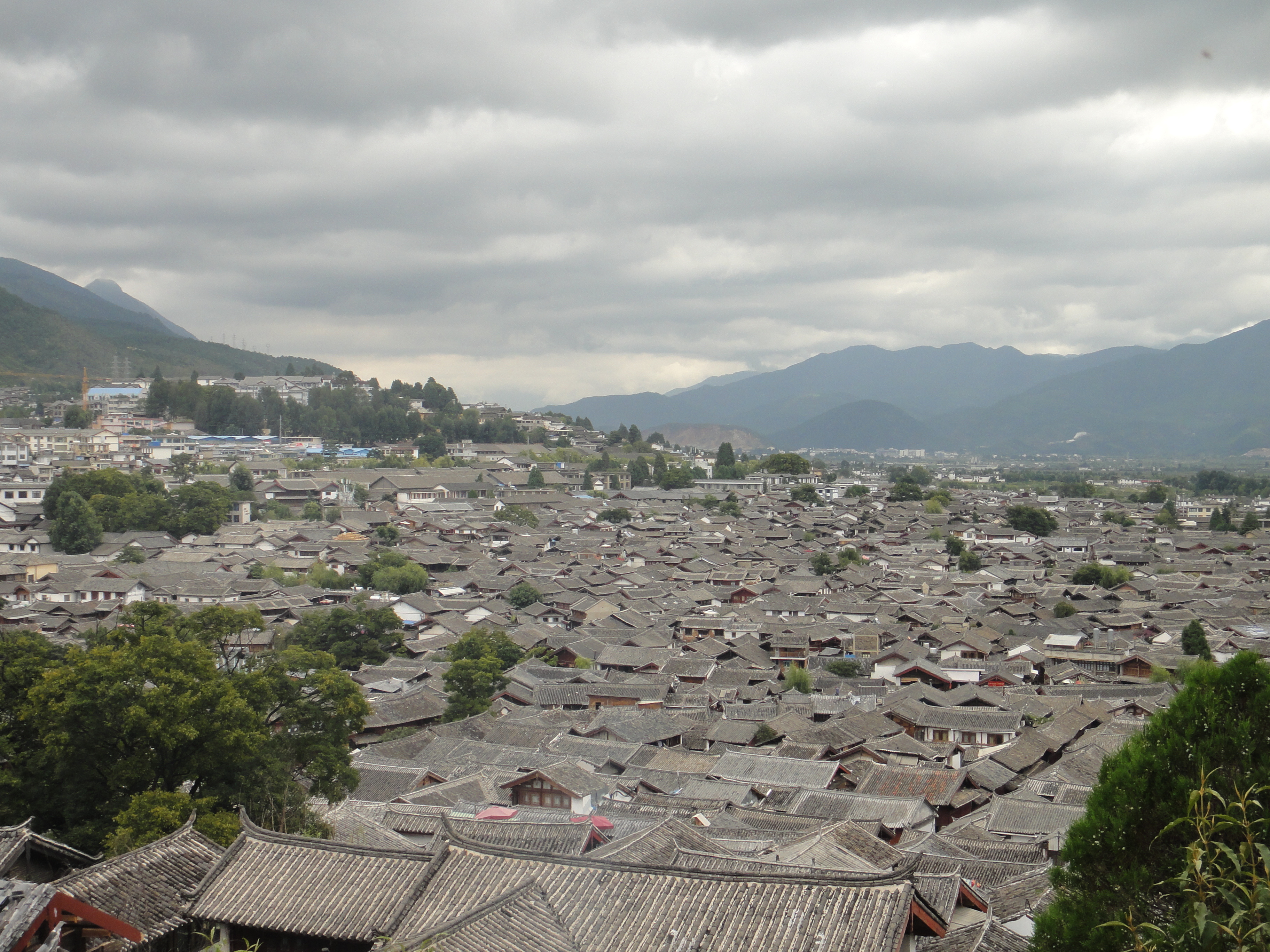 #ナシ族のママが切り盛りしている気持ちのよい宿で、部屋からみる麗江の屋根の景色も圧巻。